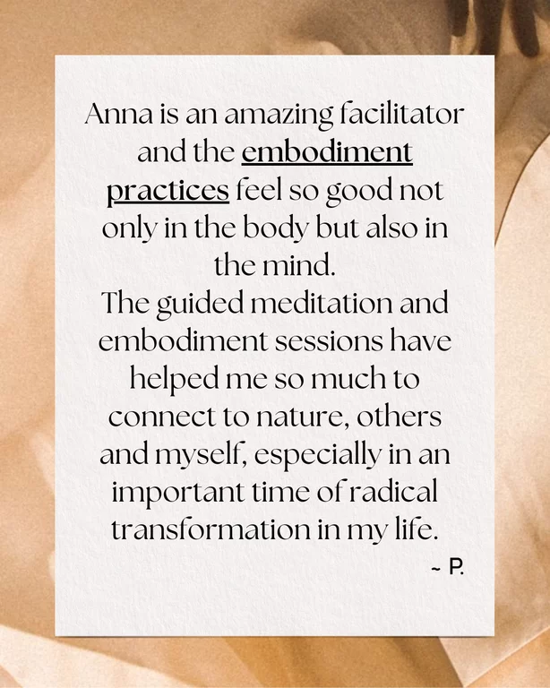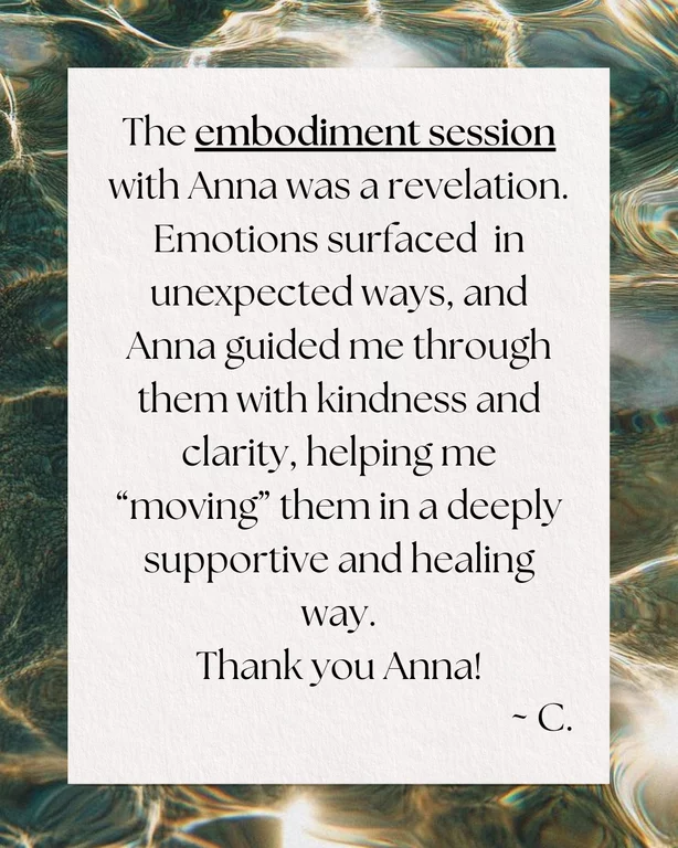 I work with the Deep Body Method®, a trauma-informed embodiment approach grounded in somatic awareness, movement, breath, self-touch, and voice. It's particularly effective in reconnecting you with your aliveness and supporting transformation, alignment, creativity and intuition.