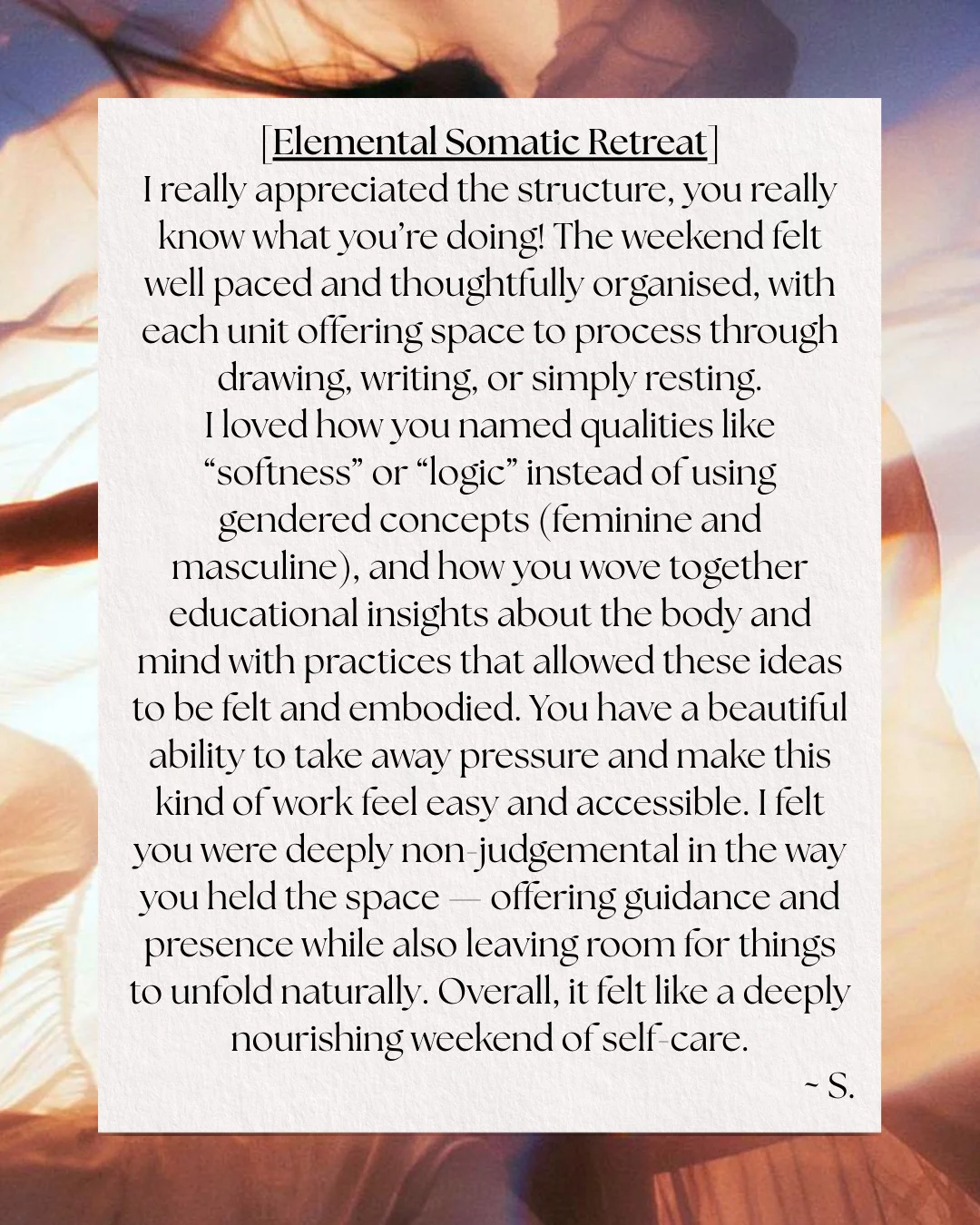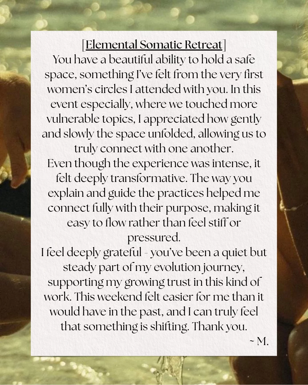 Trauma-informed, nervous system–based somatic practices that support your healing journey from chronic dysregulation, easing psycho-emotional as well as physical symptoms. This work doesn’t simply patch symptoms; it gently transforms long-held patterns at their roots, creating sustainable change over time.