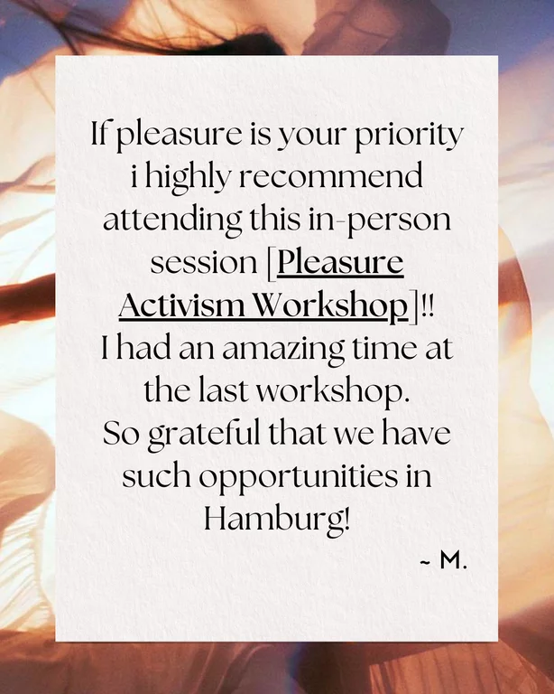 I’m a sexologist and somatic practitioner, but I also like to call myself a pleasure and liberation facilitator because my work is rooted in pleasure in all its dimensions: sexual pleasure, the pleasure of movement and sensation, and the relief of living free from psychosomatic symptoms.