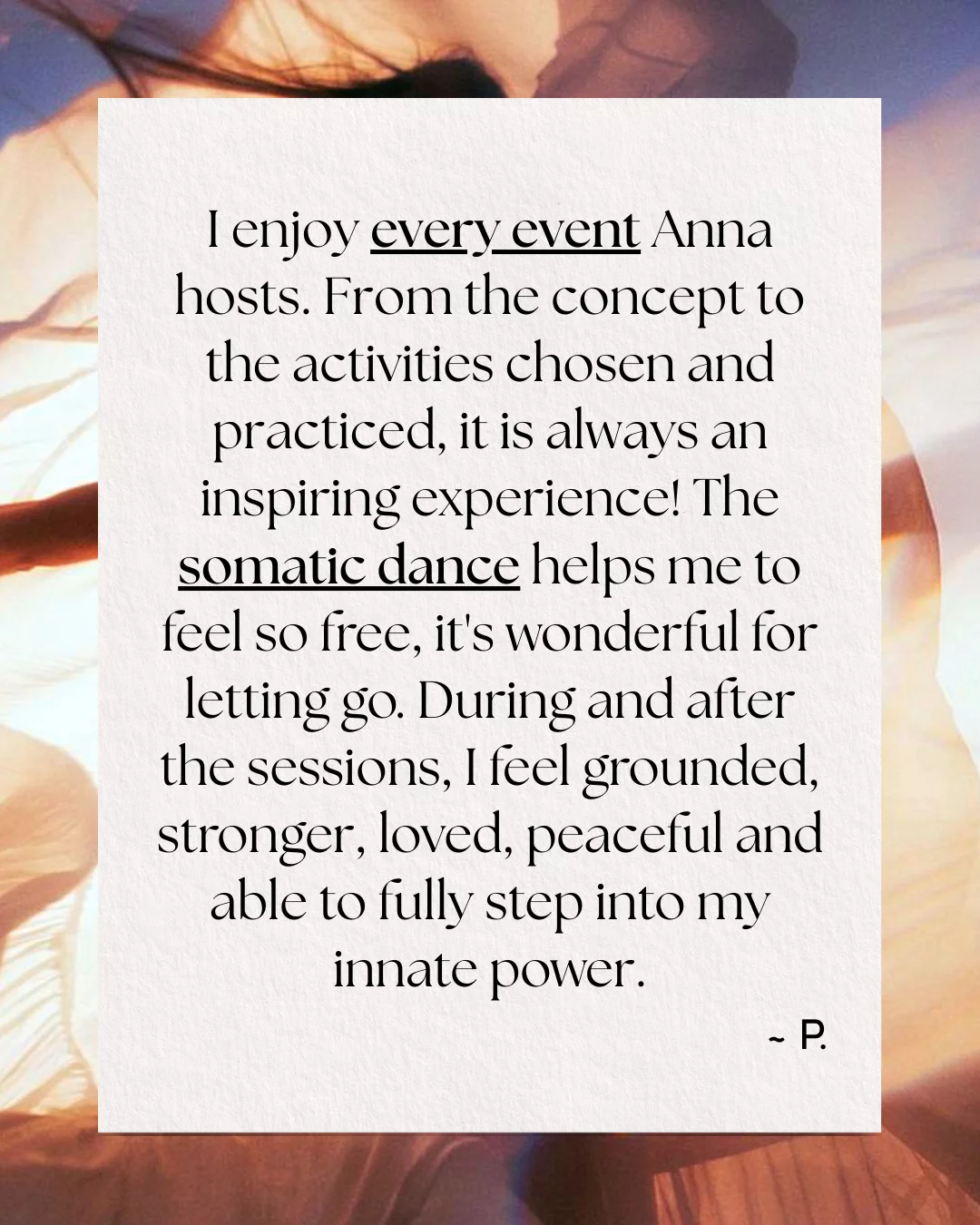 well as Somatics and Intuitive Dance.